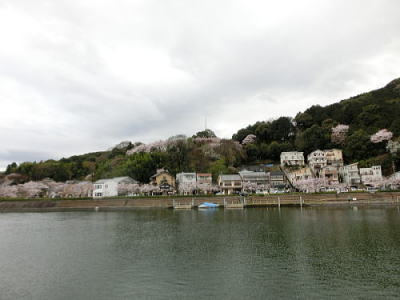 渡月橋は前方に・・・渡月橋の手前にある船着き場で下船です。船頭さん、船を操る技術は勿論ですがそのトークも