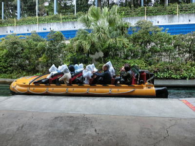 急流を下る船 水しぶきで濡れてないかなぁー |