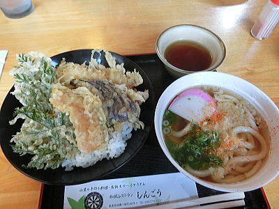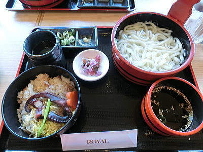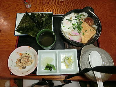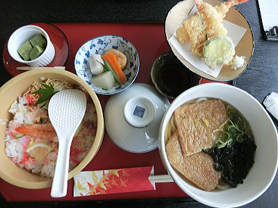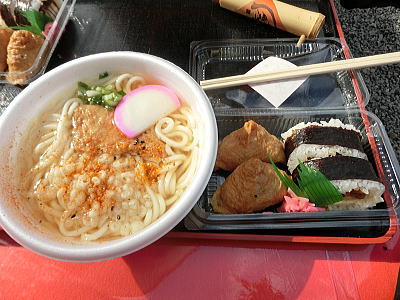 助六寿司と、おうどんを頂きます。 |