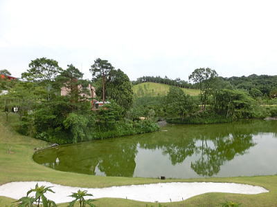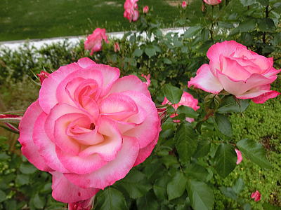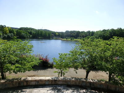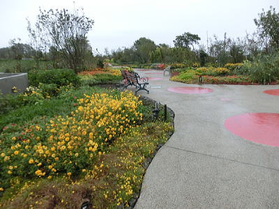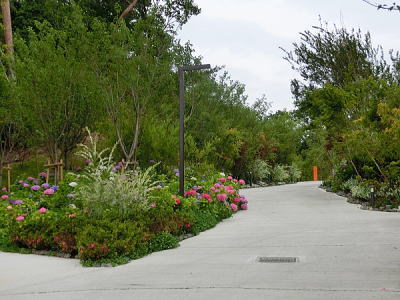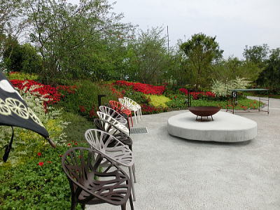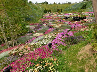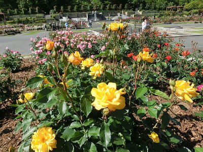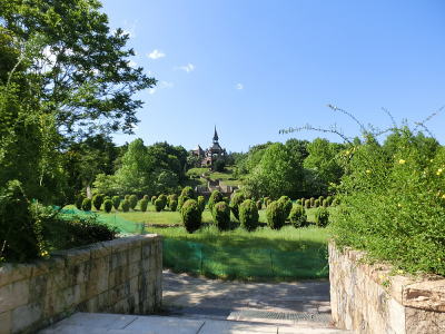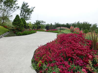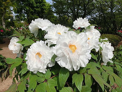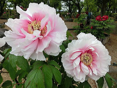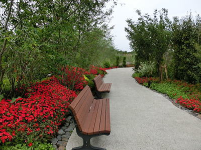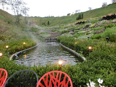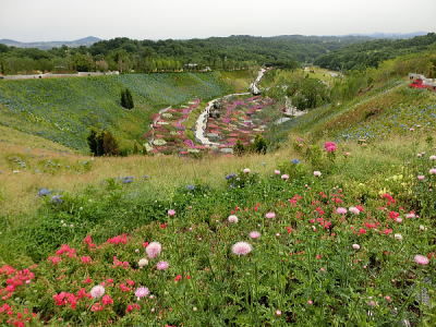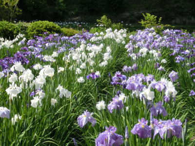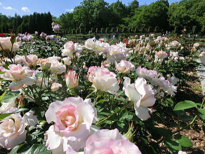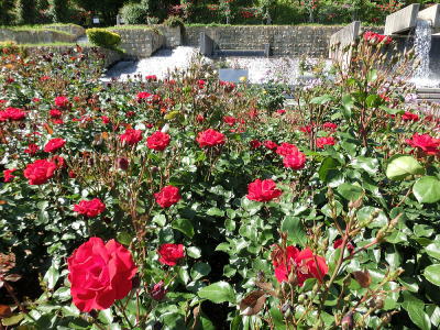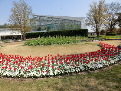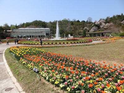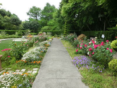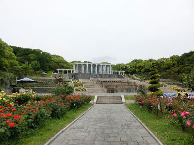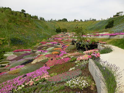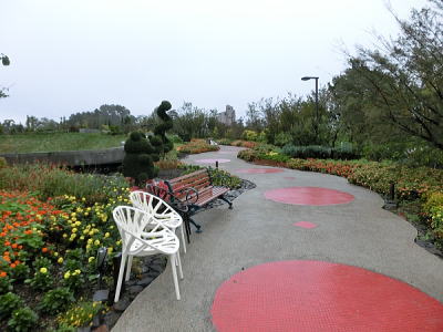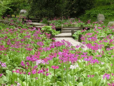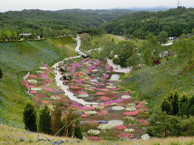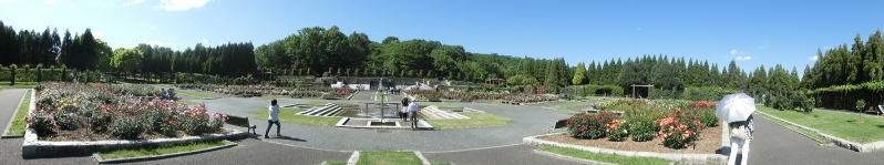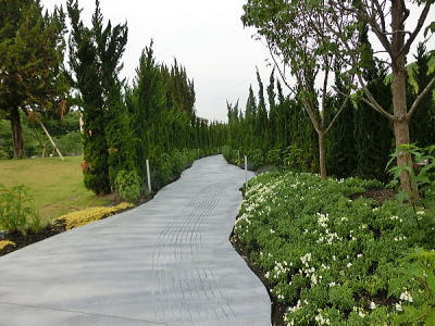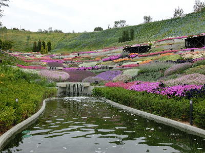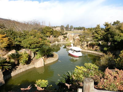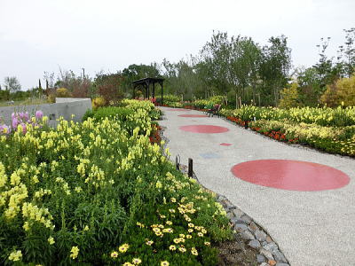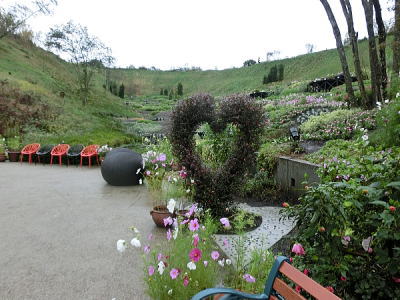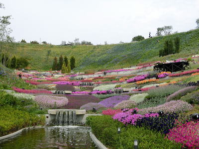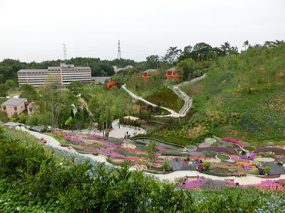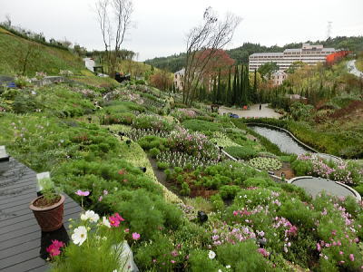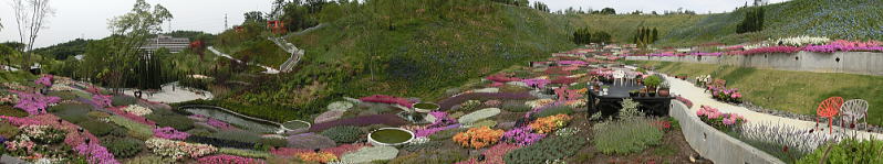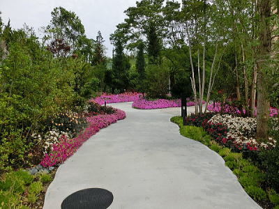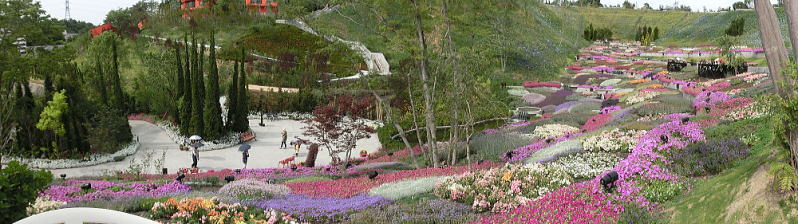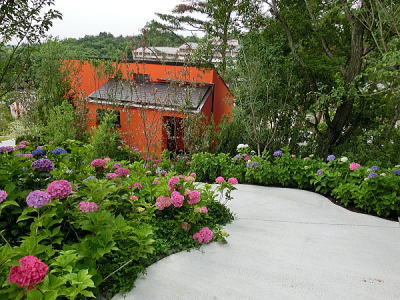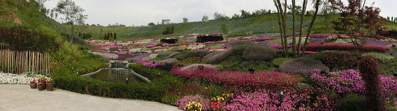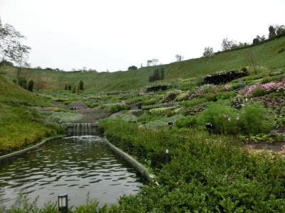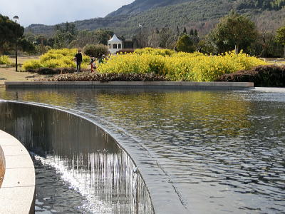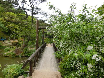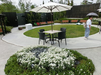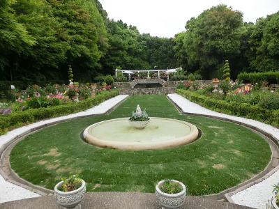 敷き詰められた洋風庭園と池泉回遊式水園(和風庭園)が