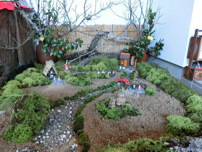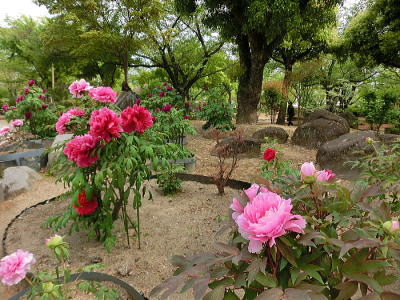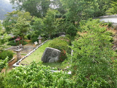 石を配置した庭があります。 |