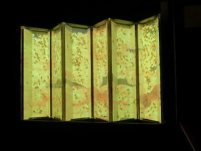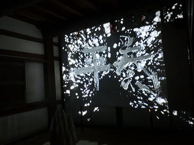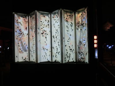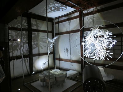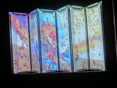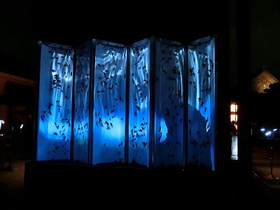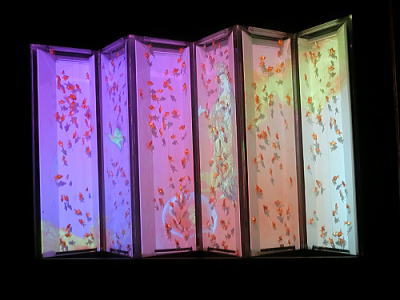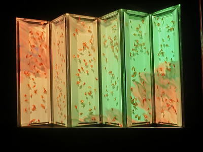屏風絵を投射しその中を金魚が優雅に泳ぐという作品。 |