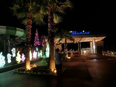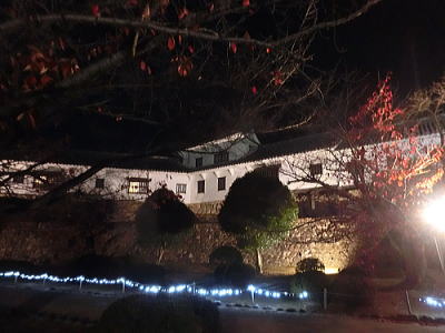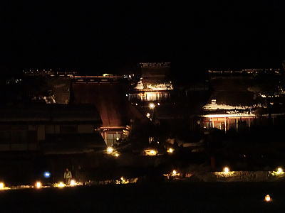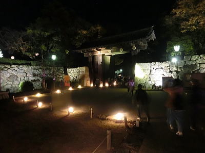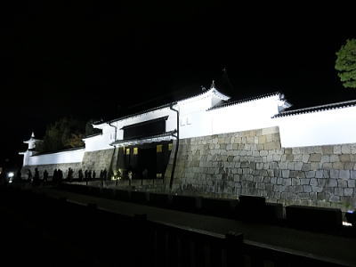 | ライトアップされた二条城東大手門を後に駐車場へと・・ |