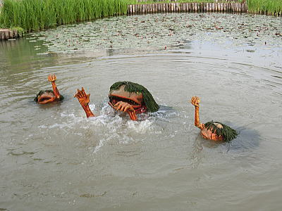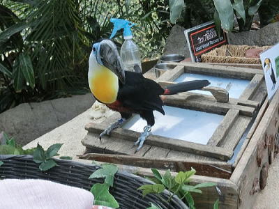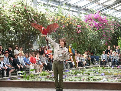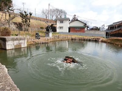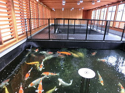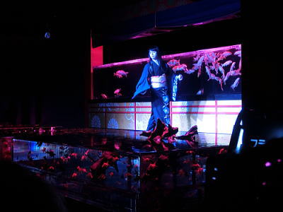 | 水戯の舞台 1時間毎に披露されます。金魚の舞 荒城蘭太郎 男性です |