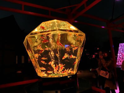 花魁・・1000匹の金魚が泳ぐ金魚鉢。江戸の遊郭を表現しており乱舞する
