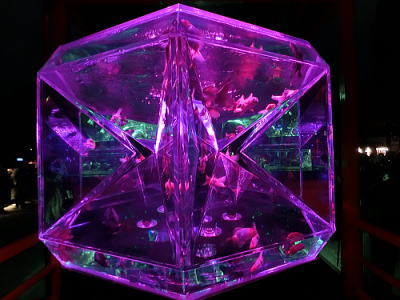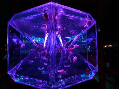 | 「カレイドリウム3D}という水槽そのものを万華鏡に見立てた作品が印象的でした。 |