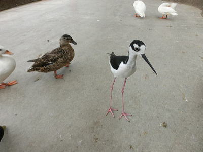 お堀には数羽のカモが・・ |