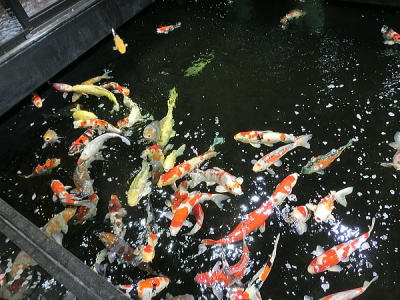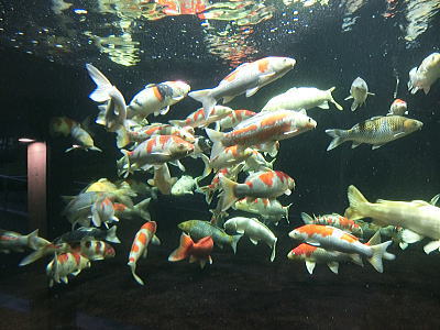 水の鏡面効果を生かして中に泳ぐ魚が様々な見え方をする作品になっています。 |