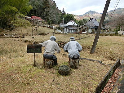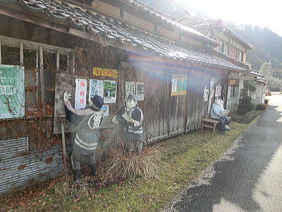村民130名 、案山子132名 村民より案山子の方が多い集落です。 |