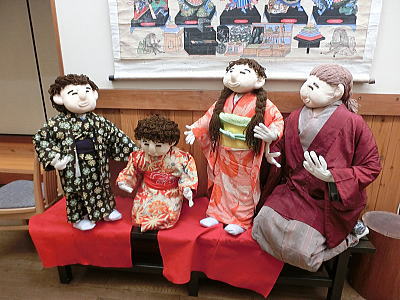 かかしギャラリーのお家の内部では家族団らんの姿が・・