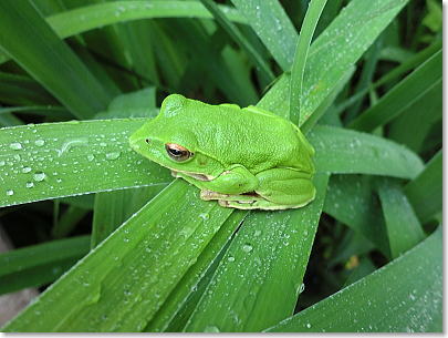| 長谷池の葉っぱの上にモリアオガエル |