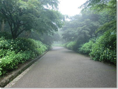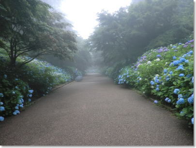 霧に包まれたあじさいの小路 |