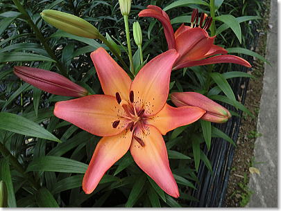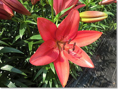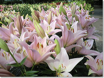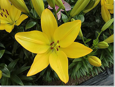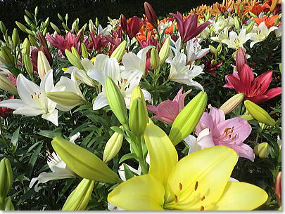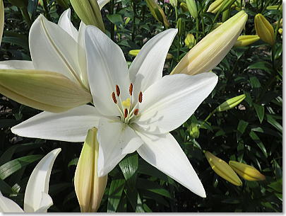 | 梅雨の晴れ間の明るい光に照らされたゆりは眩いばかりで、甘い香りに包まれ暑さも忘れてしばしうっとり。 |