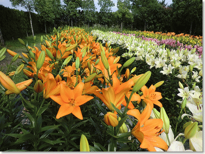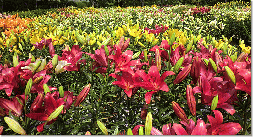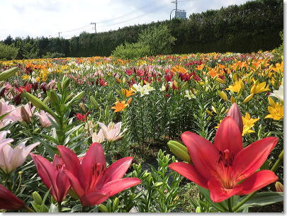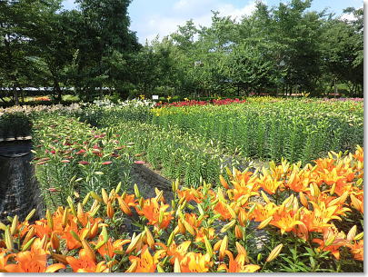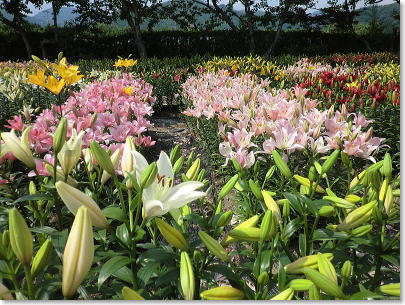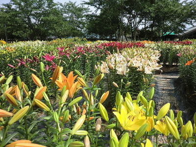 | 約60種10万本のゆりが鮮やかに咲き乱れる篠山玉水ゆり園。 |