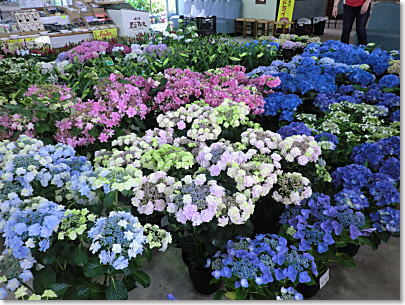 | 篠山玉水ゆり園の売店で販売されている紫陽花たち |