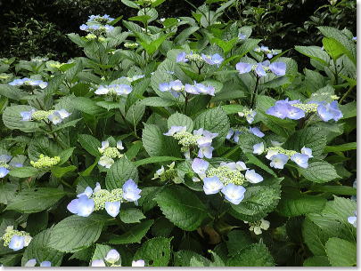 | 雨に濡れる、あじさいの小路・・・満開のヒメアジサイ |