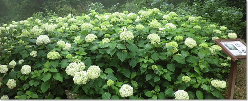2011年7月1日、神戸森林植物園にあじさいを見に小雨の中行ってきました。前回20日に続いて2回目です。真っ白に咲くアナベルの満開を見たくて・・・・植物園につく頃には雨もあがっていました。