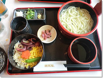 | 淡路SAで昼食・・うどんとタコ飯定食 1050円なり |