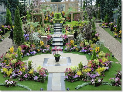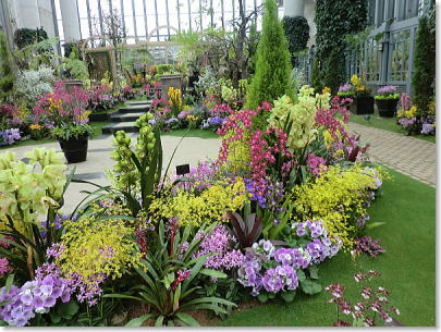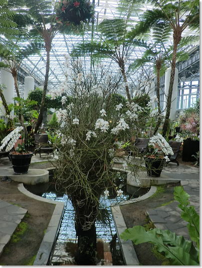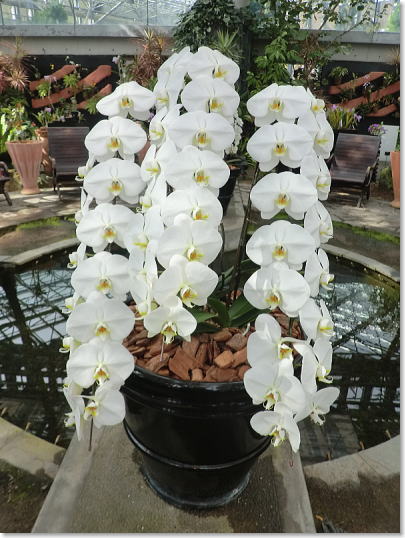 トロピカルガーデン中央に置かれた豪華なラン |