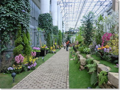 空中通路からフラワーショースペースを見下ろす |