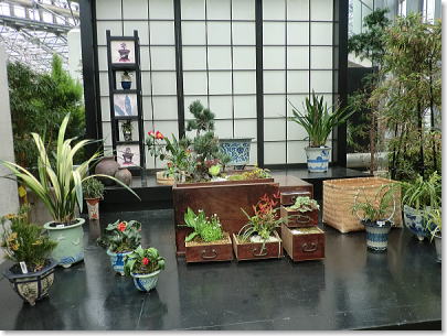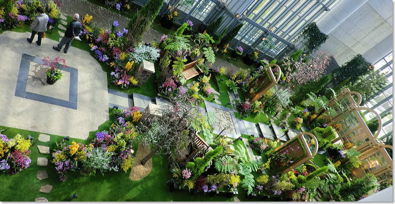 | バルコニーではフラワーショーに合わせた様々なテーマにのっとり、創意工夫をほどこした植物展示が行われています |