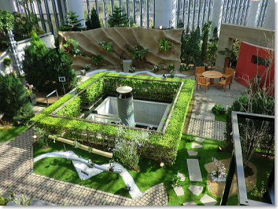 空中通路から展示室C癒しの庭を見下ろす・・・
