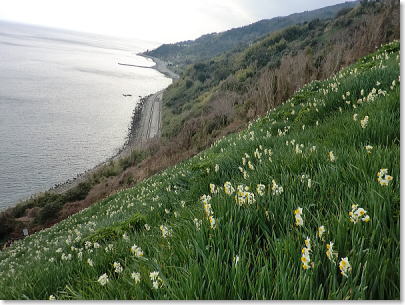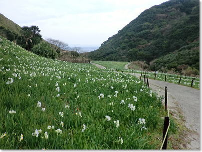 太平洋が一望でき風光明媚な水仙の群落です。 |