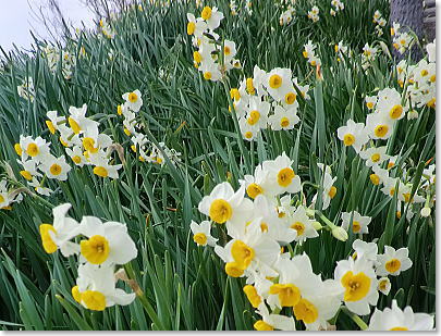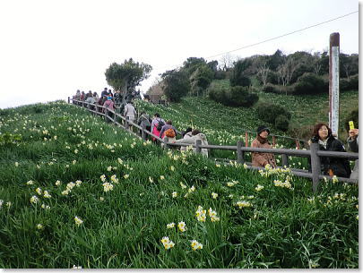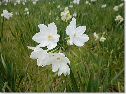 可憐な姿。自生の水仙で真っ白に覆われる斜面で早春の香りを胸いっぱいに吸い込んで春の兆しを楽しみます。 |