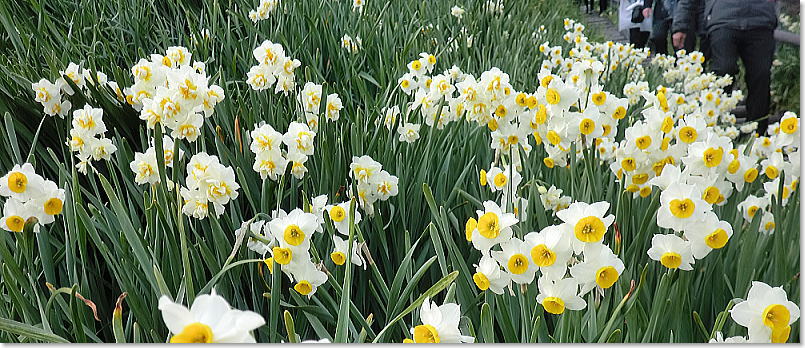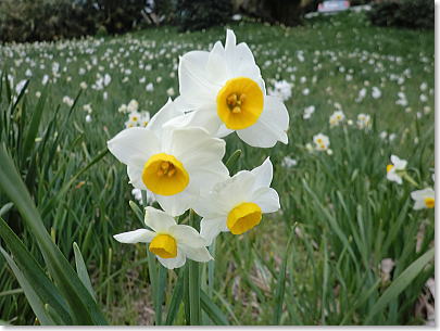 | 500万本という途方もない数が咲き乱れる姿は、いつまで見ていても飽きない光景です。二重の水仙も |