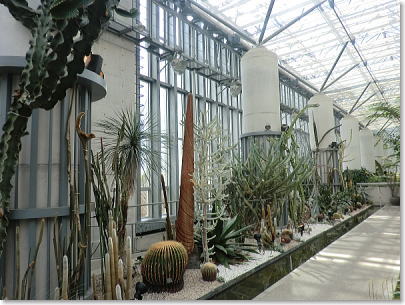 入館してエスカレートで建物の上部へ、植物館を見下ろすような空中通路に出る