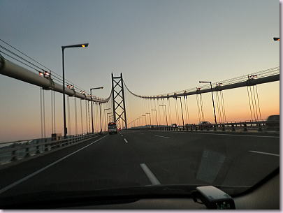 2011年2月21日、22日と淡路島に行ってきました。先月31日に続いて2回目です。前回は日帰りふぐ三昧、今回はゆっくり1泊、伊勢えび・あわびがメインです。3時30分自宅出発、5時ごろにはホテル到着予定のはずが、加古川インター入ると同時に落下物の渋滞、殆んど動かない状態です。ホテル到着したのが6時47分でした。・・・さぁーご馳走が待っています 。 |