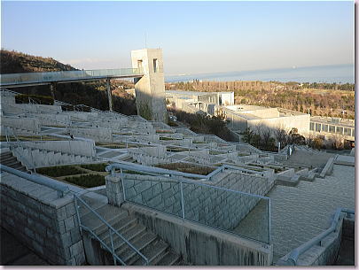 | 22日は観光です。ホテル9時前に出発、ホテルから5分ほどの所にある三熊山・洲本城をちよっとだけぶらぶらした後、淡路ワールドパークONOKORO、たこせんべいの里、花さじき、本福寺・水御堂、絵島、夢舞台・奇跡の星の植物園へと・・・めいっぱいの計画です |