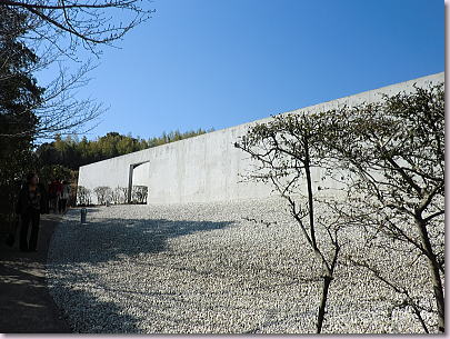 コンクリート打ちっ放しです。緩やかなアプローチに