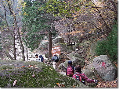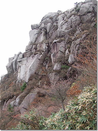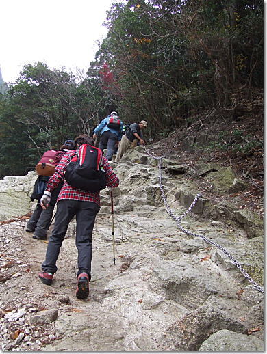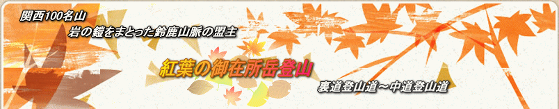 2010年11月14日、南鈴鹿のシンボルであり、名湯・湯ノ山温泉を山麓に抱く御在所岳に登ってきました。岩の露出した迫力ある山容にかかわらず山頂まではロープウェイが通じ山頂はレストランやリフトなどもある公園になっています。今回は裏道登山口から中道登山口へと進むコースをとりました。鎖やハシゴなどアルペンムード漂う箇所も沢山有り、充実した山歩きを楽しむ事がてきました。 |