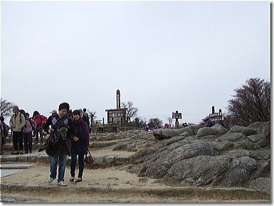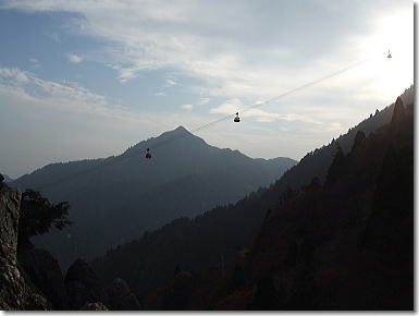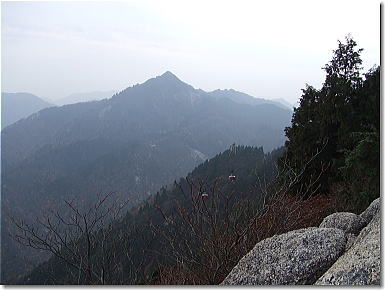 | 展望台から奇岩と山頂へと続くロープウェイ 14:01 |