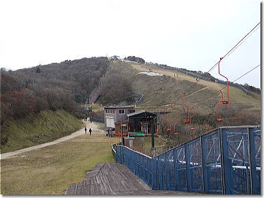 山頂を目指して芝生の急坂を歩く。きつい登り 12:40 |