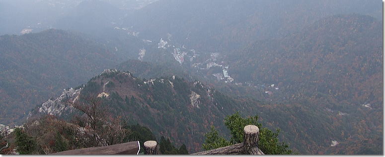 | 富士見岩展望台から湯ノ山温泉街と中道ルートを望む 14:01 |