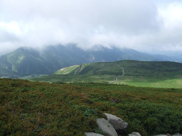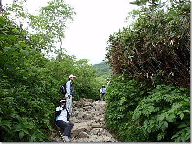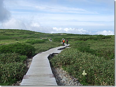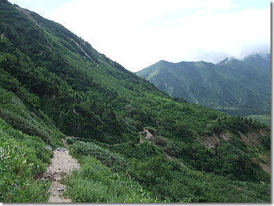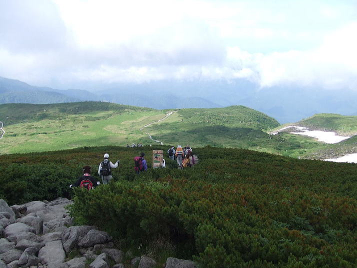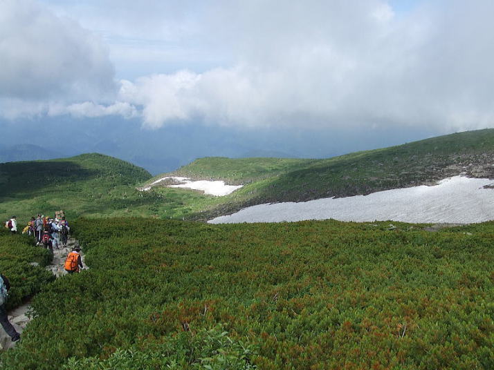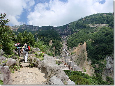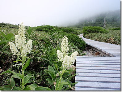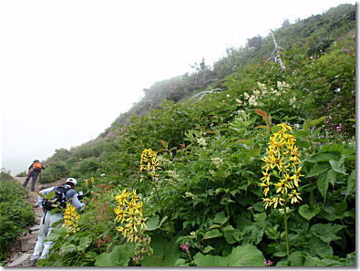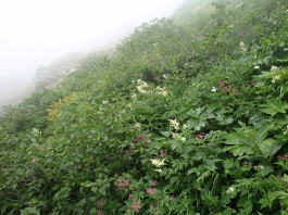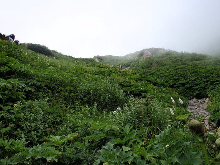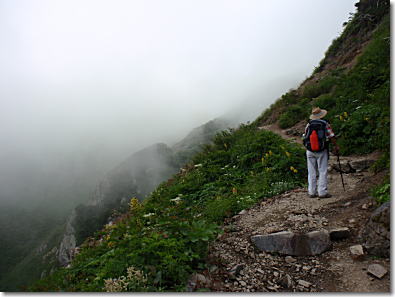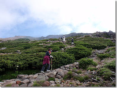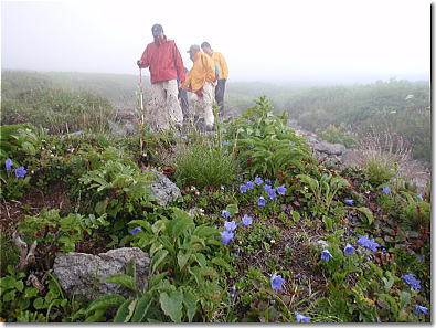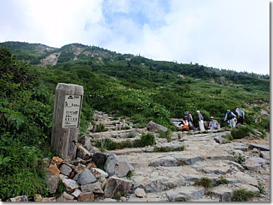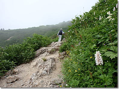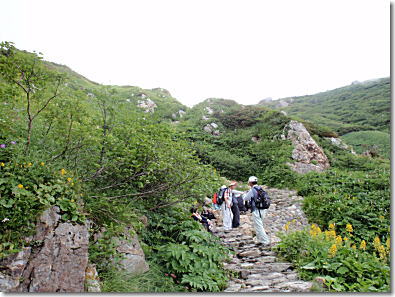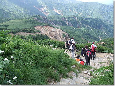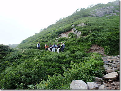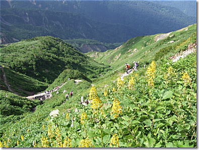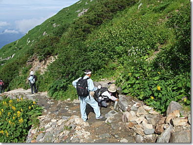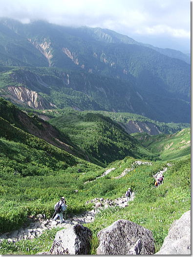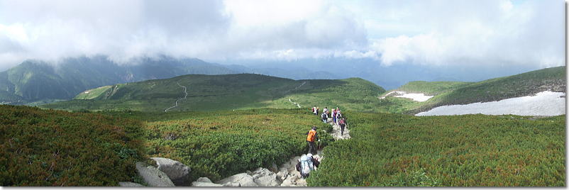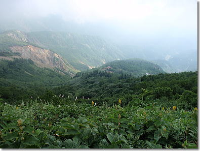 | 御前峰下山後、室堂ビジターセンターで朝食を済ませ下山です。登りと同じコースです。下りは余裕もあり、風景・高山植物を楽しみながらの下山となりました。 |