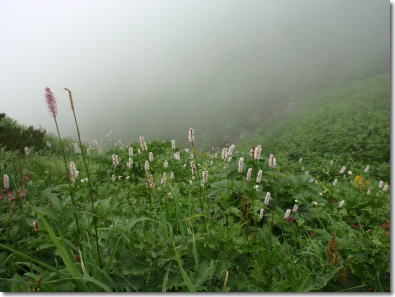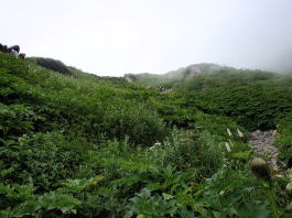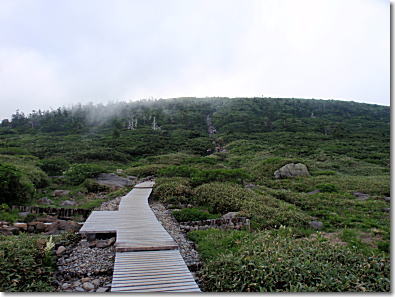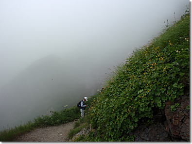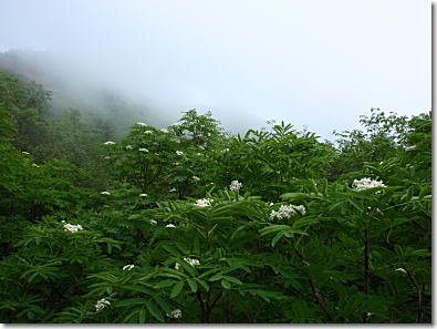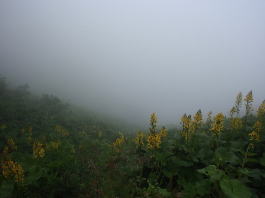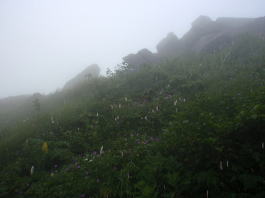 霧の晴れ間に山頂方面をパチリ 6:12 |