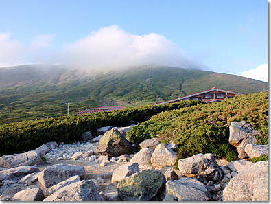 | 宿泊・室堂の白山奥宮から、山頂は霧の中 5:26 |