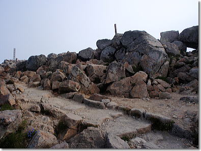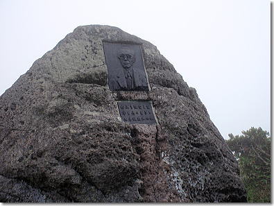 白山(御前峰)頂上の碑。標高2,702mとある。周辺には剣が峰、大汝峰などいくつもの頂上が存在するが