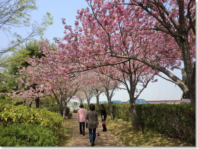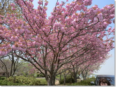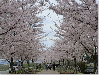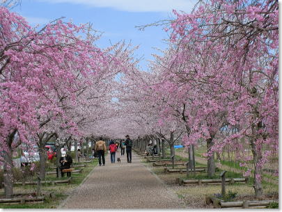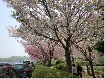 | 2012年4月24日 小野市黍田町の加古川右岸には延長850mにわたって35種260本の八重桜が植えられており、「桜づつみ」として親しまれています。 桜づつみは、加古川上流浄化センターの修景施設として建設省と兵庫県が整備した施設で、桜つづみの他、梁瀬苑(やなせえん)があり、ツツジやサザンカ、日本庭園、芝生広場、浄化センターの処理水を利用した滝や噴水、トンボ池などのビオトープも整備されています。 |