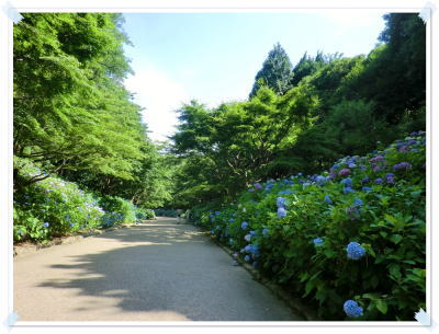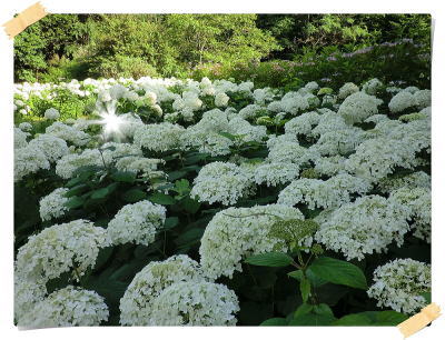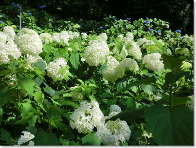 | 一番人気のある紫陽花、アナベル・・・・見本園の土手の上に群生 |