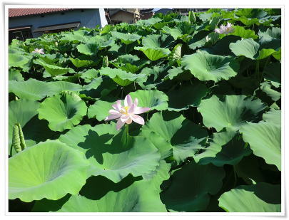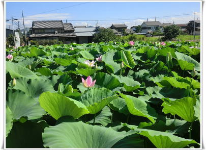 | 加古川市八幡町の市道を走行中、田んぼの中に蓮の花が・・蓮根の栽培かも? |