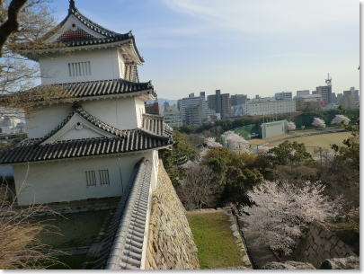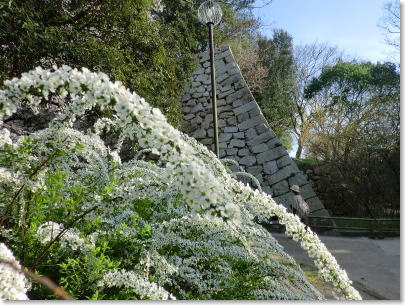 | 明石城跡に造られた県立公園で、敷地面積は約55万平方mにも及ぶ。明石城は1619年(元和5)、徳川家康の曾孫にあたる小笠原忠真[ただざね]が築城。明治維新で大半は取り壊されたが、白亜の巽[たつみ]櫓と坤[ひつじさる]櫓が残されている。2000年春には両櫓を結ぶ土塀を100年ぶりに復元、美しい姿が蘇った。春は剛の池を中心に約1000本のソメイヨシノが咲く花見の名所。 |