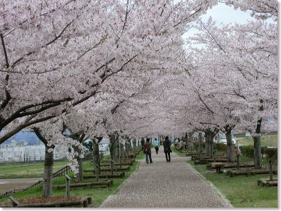 加古川と東条川左岸の堤防に連なる桜並木は、約4qと西日本最大級!