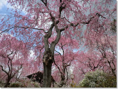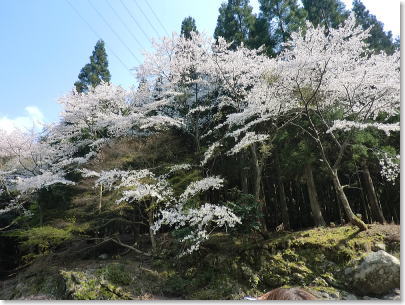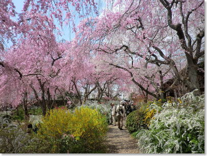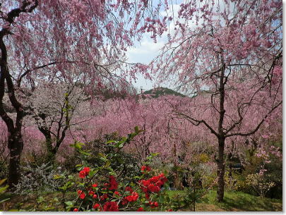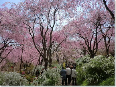 | 2012年4月17日 谷苑は金閣寺より衣笠山を御室より八十八ヵ所の山を越えた洛北原谷にあり、不毛の土地を、戦後の原谷開拓団の方より依頼を受けて昭和32年から花好きの岩村さんが景色の良い丘を選び数100本の桜や紅葉ほか十種類の樹木を植樹したのが始まりとされています。(個人の農園です) |