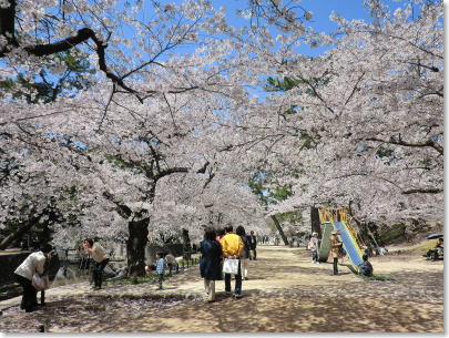 | 2012年4月12日、夙川 桜散策ぶらぶら後、明石公園にも寄って見ることにしました。明石公園は今が満開です。 |