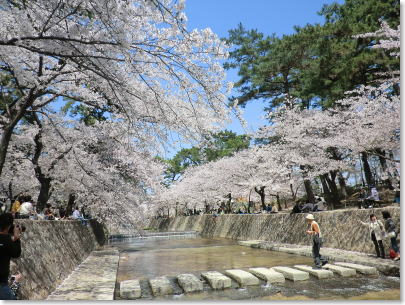 | 四季を通じて優れた景観を楽しむことができる夙川公園。特に春の桜は有名で、川の両岸に南北2.8kmにわたり桜並木が続く。平成2年には「さくら名所100選」にも選ばれた。3月下旬〜4月上旬にかけて、ソメイヨシノを中心に約1,660本の桜が一斉に開花する様は見事です。 |