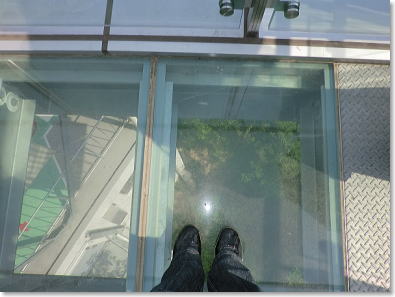 床面には強化ガラス張られ空中廊下になっています。